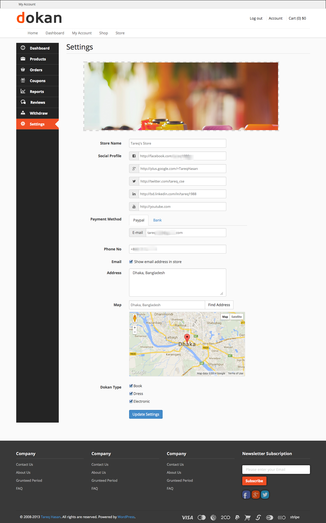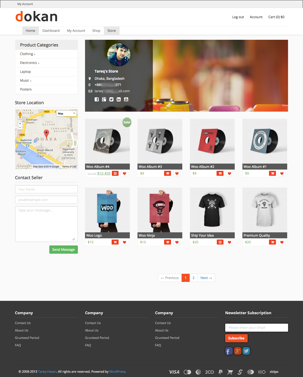 “Dokan” – an upcoming WordPress app theme for building multi-seller e-commerce store, powered by WooCommerce. Me and my team are working on this for couple of months and it’s going to be released at end of this month or in first half of February.