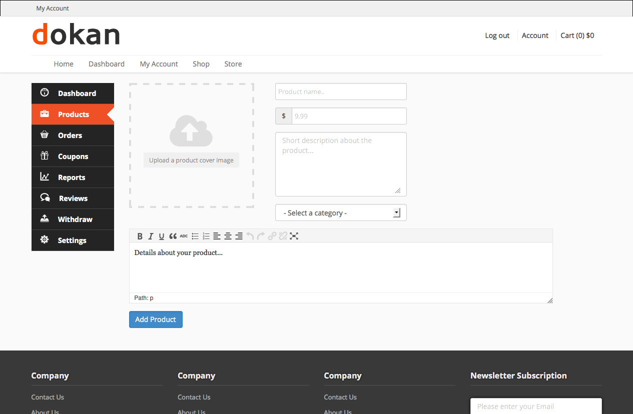 Currently sellers can’t put the terms and conditions, but it’s on our feature list already. Dokan is based on WooCommerce, so you’ve to install WooCommerce as well.