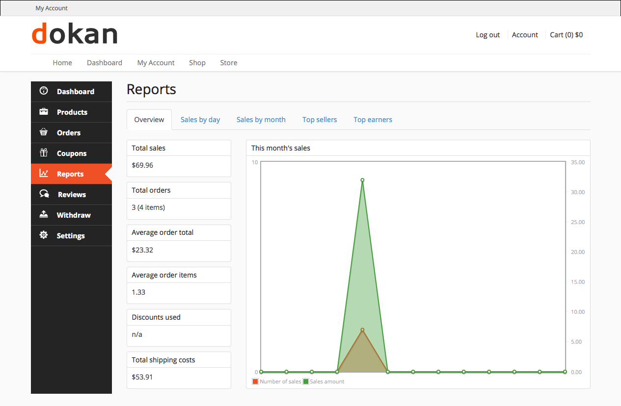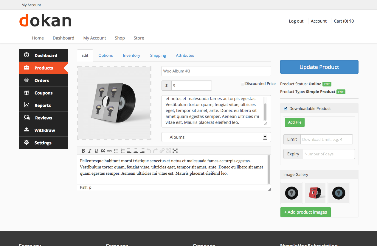 the really awesome thing with Dokan is that it allows sellers to manage their store through a front-end interface that’s easy to use without requiring them to access the WP dashboard. The blogs is apparently not ported to the front, which makes sense considering that they should form part of your identity. but, tareq actually released another plugin which you could potentially use to let others post to your blog from the front-end, wp user frontend.
